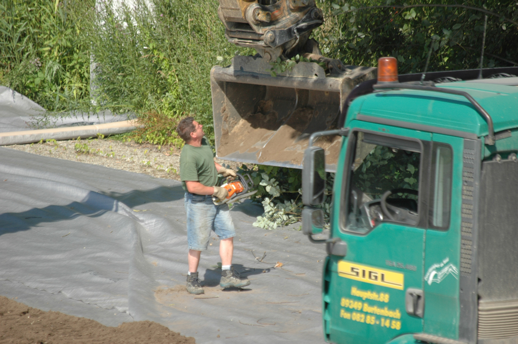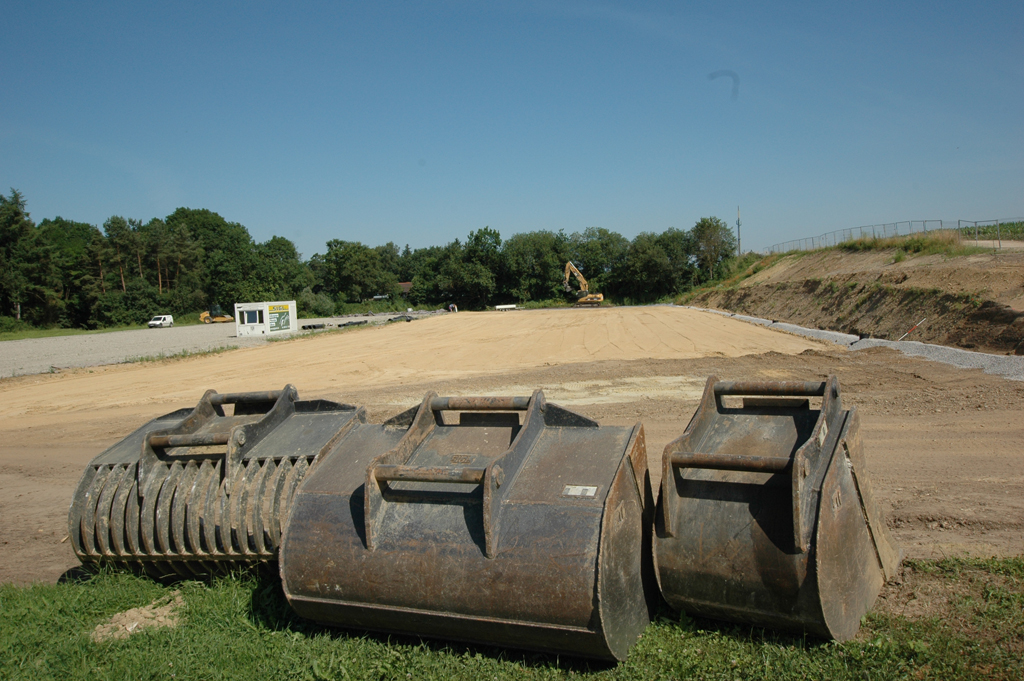 Je nach Größe und Bedarf, auf engstem Raum oder weiten Flächen stehen für Aushubarbeiten Bagger von 1,2 bis 27 Tonnen, Raupen, Radlader, Verdichtungsgeräte und Planierraupen zur Verfügung.
